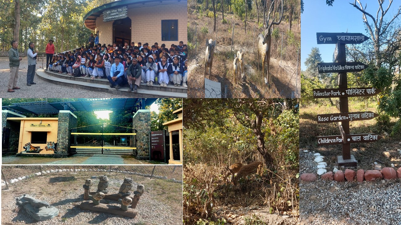 सुर्खाब, साइबेरियन क्रेन आदि सैकड़ों पक्षियों को देखा। उसके पश्चात छात्र-छात्राओं का दल रामनगर शहर से चलते हुए विश्व प्रसिद्ध जिम कॉर्बेट राष्ट्रीय पार्क में जैव विविधता को निहारते हुए धनगढ़ी गेट पहुंचा। कॉर्बेट टाइगर रिजर्व सर्पदुली रेंज के वन दरोगा श्री धर्मपाल सिंह नेगी जी ने कार्यशाला आयोजित करके बच्चों को प्राकृतिक वन सम्पदा को