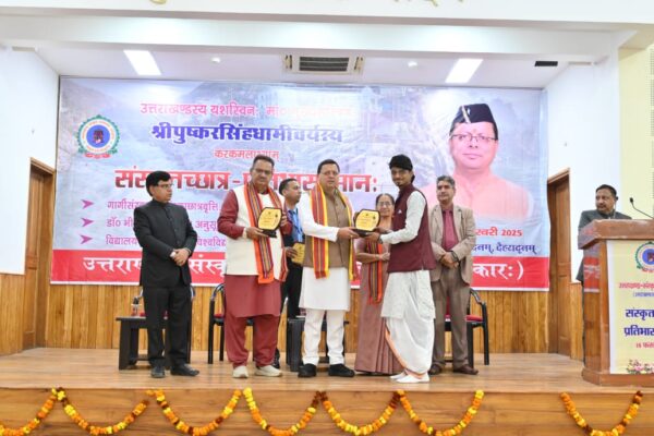 उत्तराखण्ड के मुख्यमंत्री द्वारा संस्कृत प्रतिभा वान छात्र को विश्व के सबसे प्राचीन भाषा संस्कृत के लिए कार्य कर रहे छात्रों को इस सहरनिय बताया राज्य कि द्वितीय राज भाषा मे कार्य करने वाले सभी प्रतिभा वान छात्र -छात्राओं आज समान हो रहा है य़ह क्षण संस्कृत जगत के लिए गर्व कि बात है