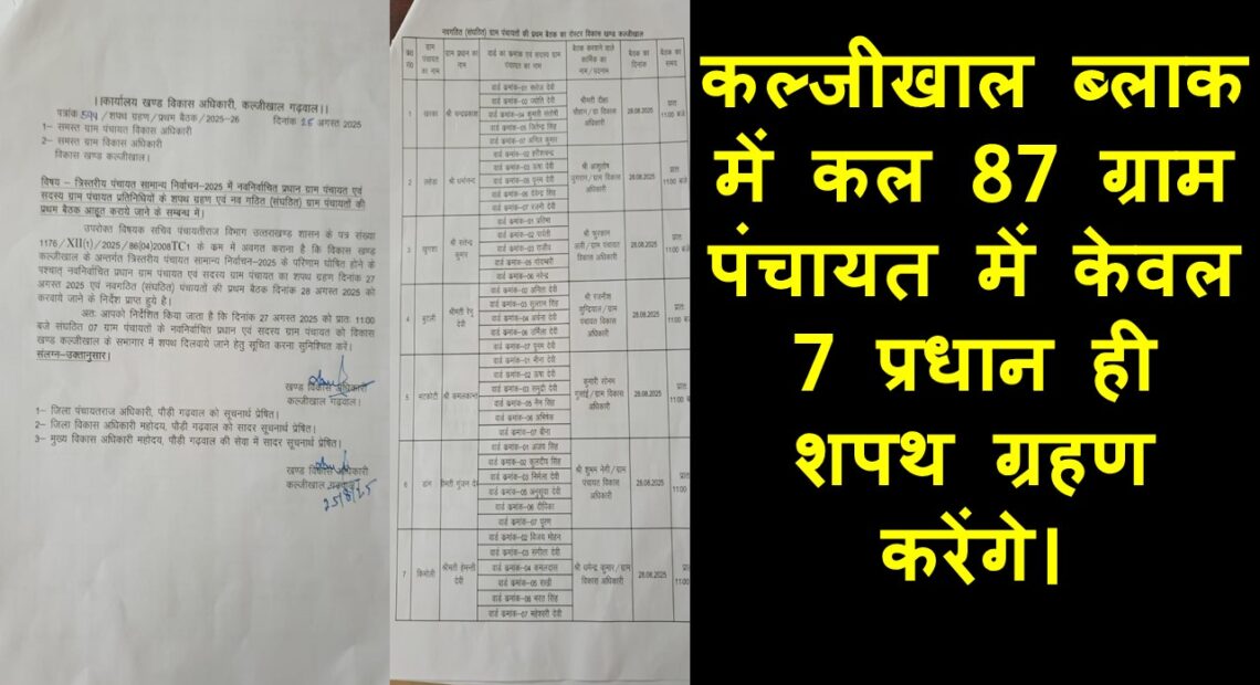 कल्जीखाल ब्लाक में 27 अगस्त को 87 ग्राम पंचायत में केवल 7 प्रधान ही शपथ ग्रहण करेंगे।