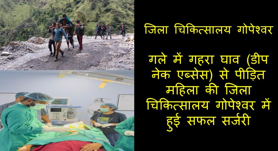गले में गहरा घाव (डीप नेक एब्सेस) से पीड़ित महिला की जिला चिकित्सालय गोपेश्वर में हुई सफल सर्जरी