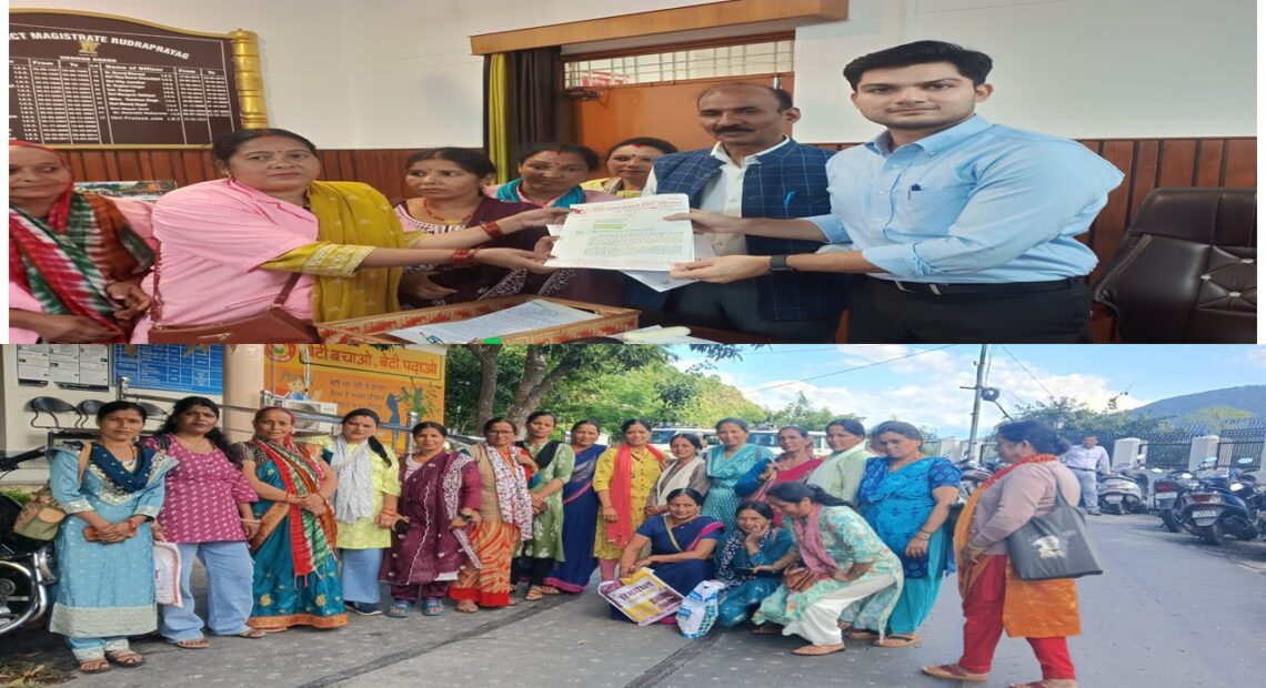 रद्रप्रयाग जिले की आशा कार्यक्रर्ती संगठन व आशा फैसिलेटटर संगठन ने जिला अधिकारी के माध्यम से मा०प्रधान मंत्री व मा०मुख्य मंत्री को अपनी छै सूत्री मांगो के निराकरण संब़ंध में ज्ञापन सौपा।जिला अध्यक्ष सुसीला सेमवाल ने कहा उतराखंड के पर्वतीय क्षेत्रो व दुर्गम स्थानों रही आशा कर्मचारियों को इतने न्यूनतम मानदेय में अपने घर परिवार का दिनर्चया चलाने में कठिनाईयों का सामना करना पड़ता है।
