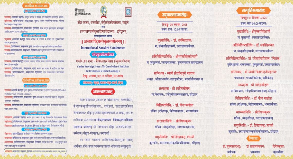 उत्तराखण्ड विश्वविद्यालय और विदेश मंत्रालय भारत सरकार के संयुक्त तत्वावधान में भारतीय ज्ञान परम्परा और वैश्विक ज्ञान के विकास में संस्कृत की अमूल्य भूमिका पर गहन विचार-विमर्श के लिए एक विशिष्ट अंतर्राष्ट्रीय संस्कृत सम्मेलन का आयोजन किया जा रहा है।