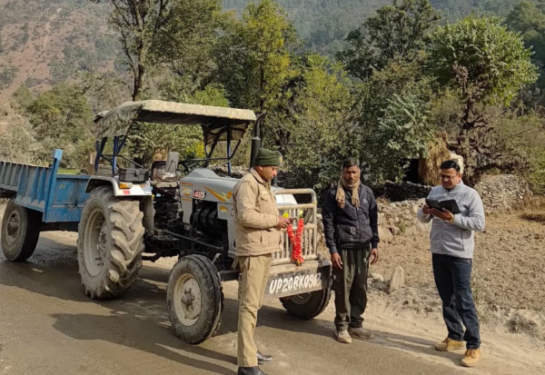 जनपद चमोली के अंतर्गत नंदा नगर घाट रोड पर अवैध तरीके से चल रहे ट्रैक्टर पर कर्णप्रयाग आईटीओ द्वारा ट्रैक्टर को सीज किया गया ट्रैक्टर किसानी के कार्यो हेतु उपयोग किया जाना था परंतु UP नम्बर का ट्रैक्टर व्यवसायिक कार्यों के लिए उपयोग किया जा रहा इसका रजिस्ट्रेशन भी एग्रीकल्चर उपयोग के लिए किया गया था यह अवैध तरीके से चल रहा था इसकी सूचना स्थानीय व्यक्तियों द्वारा दी गई शिकायत का सज्ञान त्वरित लिया गया R.T.O कर्णप्रयाग द्वारा अवगत करवाया गया है कि किसानी के लिए उपयोग आने जाने वाले ट्रैक्टरों से व्यवसायिक कार्य नहीं किया जा सकता है जिनके द्वारा इस प्रकार कार्य किया जाता उन पर परिवाहन नियमों के तह कारवाई की जाएगी जिस ट्रैक्टर को नन्दानगर घाट रोड से पकड़ा गया उसके काग़ज़ों कि जाँच कि गयी जिसमें गड़बड़ी पाई गई नियमों के तह चालान किया गया है और गाड़ी ट्रॉली के साथ सीज गई है!