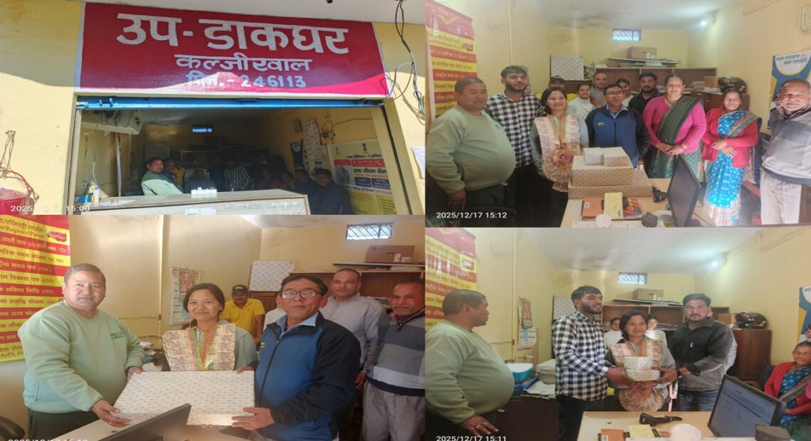 आज कल्जीखाल उप डाकघर में साक्षी राणा के स्थानांतरण होने पर समस्त कर्मचारियों नें उन्हें भावभीनी विदाई दी। साक्षी पिछले दो साल से उप डाकघर कल्जीखाल के उप शाखा किमोली में कार्यरत थी एवं उनका स्थानांतरण नैनीताल के भवाली में हुआ है। साक्षी नें बी फार्मा भी किया है और वह वहां जौब न मिलने के कारण डाक विभाग में कार्यरत है और अन्य जगहों की भी तैयारी कर रही है।