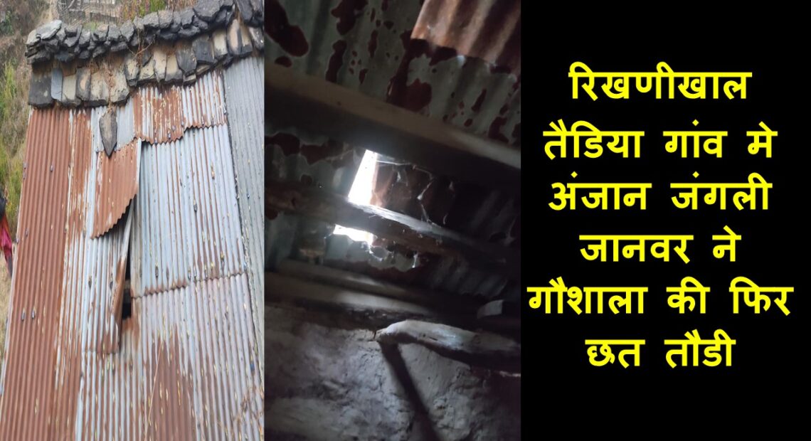 पौडी- रिखणीखाल के तैडिया गांव मे एक बार फिर अनजान जानवर ने तोडी छत।