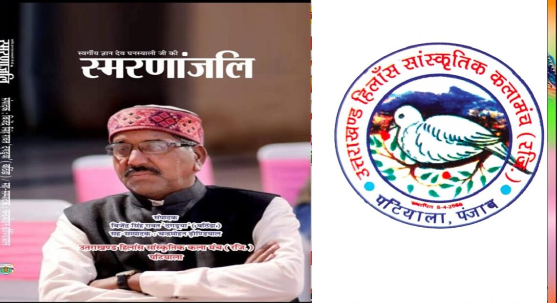 जगदीश भारद्वाज- (पटियाला) :- दिवंगत पहाड़ी सामाजिक कार्यकर्ता स्वर्गीय ज्ञान देव घनस्याली जी की पावन स्मृति में प्रकाशित पुस्तक “समरांजलि” का विमोचन “उतराखंड हिलांश सांस्कृतिक कला मंच पटियाला” के तत्वाधान में आगामी 15 मार्च, दिन रविवार को पटियाला के परवाना हाल में होगा । इस पुस्तक का संपादन स्व. ज्ञान देव जी के प्रिय दोस्त और वरिष्ट साहित्यकार श्री बिजेंद्र सिंह रावत ‘दगड़या” जी द्वारा किया गया हैं और सह- संपादक श्री चंद्र मोहन ढोंडीयाल जी हैं । यह पहली बार हइओगा जब किसी दिवंगत सामाजिक वयक्ति के ऊपर कोई स्मृति पुस्तक लिखी गई हो ।